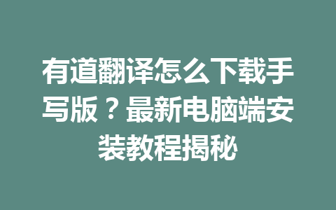 有道翻译怎么下载手写版?最新电脑端安装教程揭秘